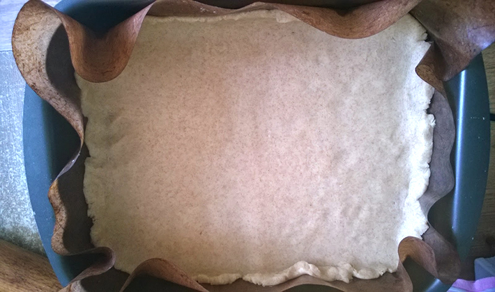 Étendre une fine couche de pâte sous la forme avec les côtés tapissés de papier sulfurisé.