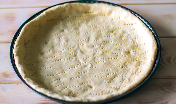 Percer la pâte à la fourchette sur toute la surface et cuire au four pendant 10 minutes à 180 ° C.