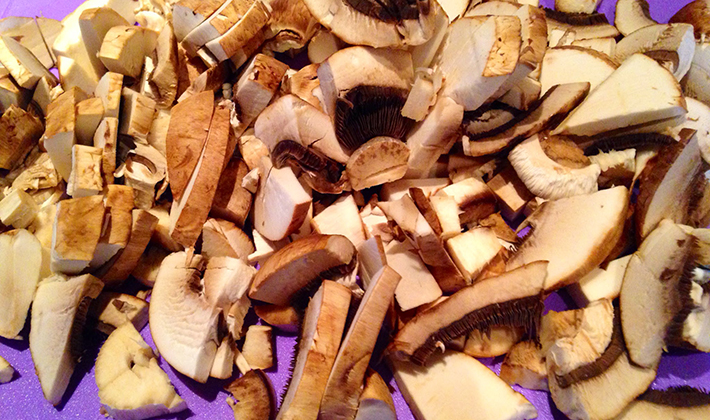 Grâce aux champignons, le gâteau acquiert un goût incroyable, il faut donc les laisser gros.