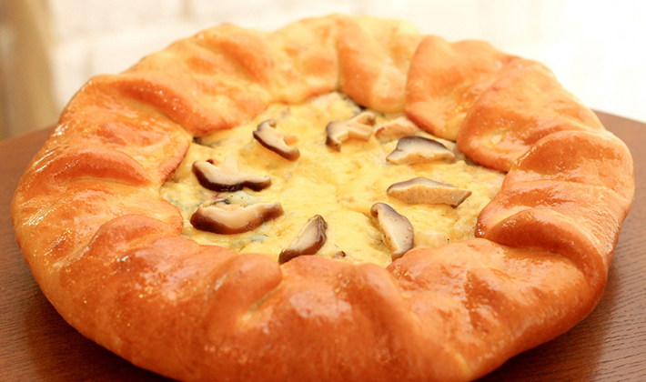 - Tarte ouverte aux champignons à base de pâte sans levure