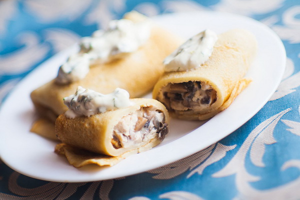 Crêpes à la viande et aux champignons: recettes