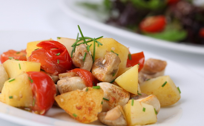 - Champignons frits avec pommes de terre et tomates