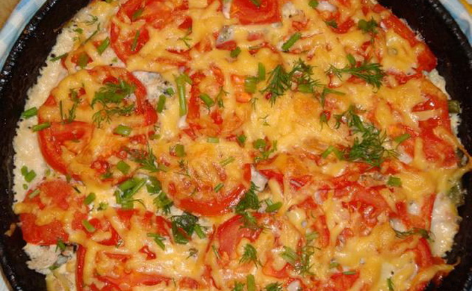 - Remplir les chapeaux de champignons aux oignons et de pommes de terre hachées. Mettez les tasses de tomates dans une poêle à frire, mettez-y des chapeaux garnis. Saupoudrer de fromage râpé. Envoyer au four. Sur une pomme de terre cuite avec des champignons et des tomates, une délicieuse croûte de fromage devrait apparaître sur le dessus.