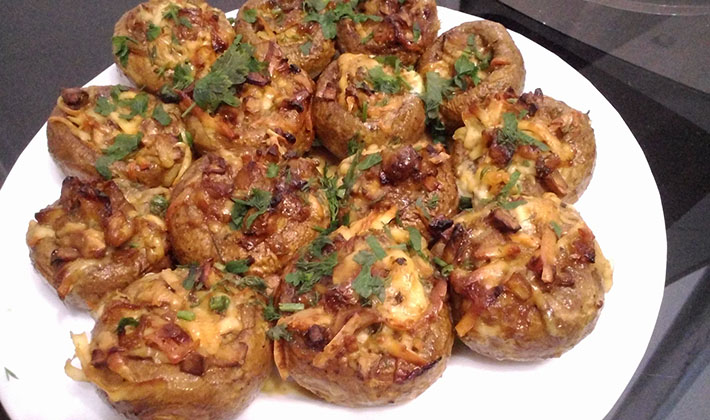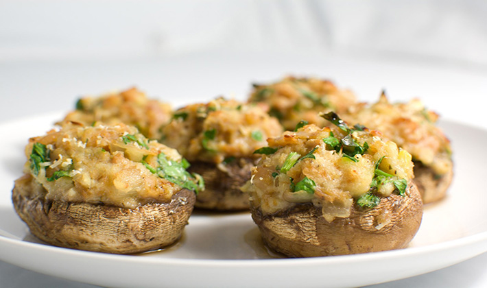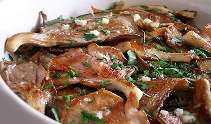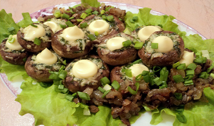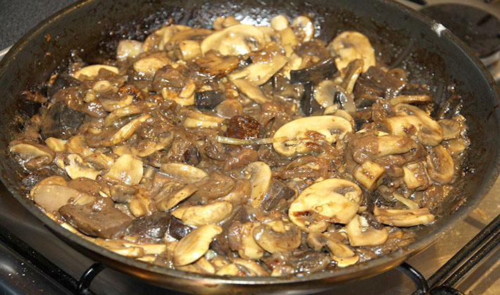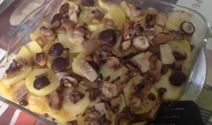 - Cuire au four environ 45 minutes, tandis que 15 minutes avant la fin de la cuisson, augmenter le feu pour que les champignons soient bien dorés.
