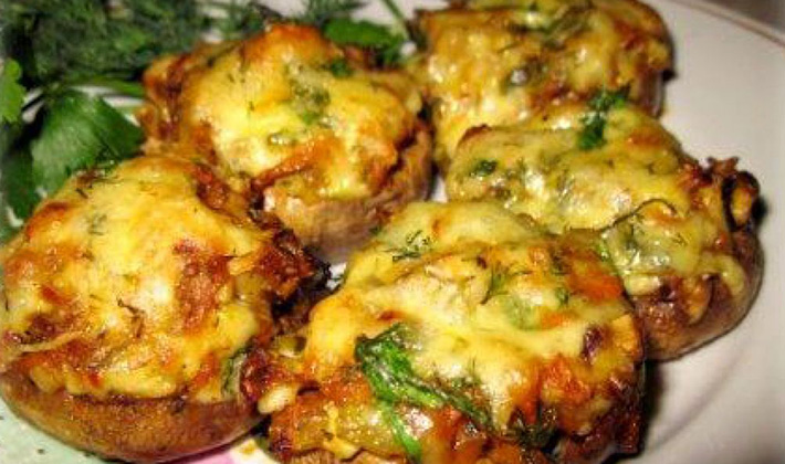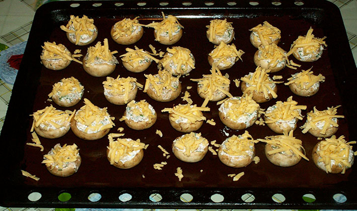 - Pour cuire les champignons entiers cuits au four, vous devez les chauffer à 180 ° C, puis les laver, les nettoyer, les bien sécher, séparer les cuisses, mettre les chapeaux sur une plaque à pâtisserie et mettre au four pendant 10-15 minutes.