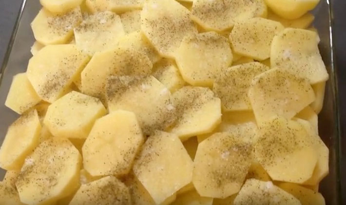 Assaisonner chaque couche de pommes de terre avec du sel et du poivre noir moulu.