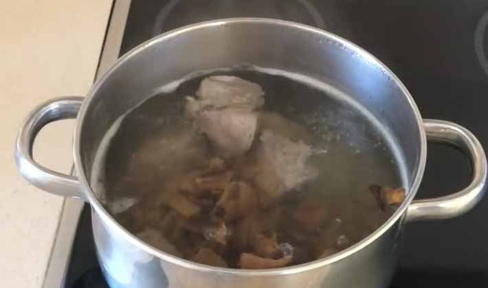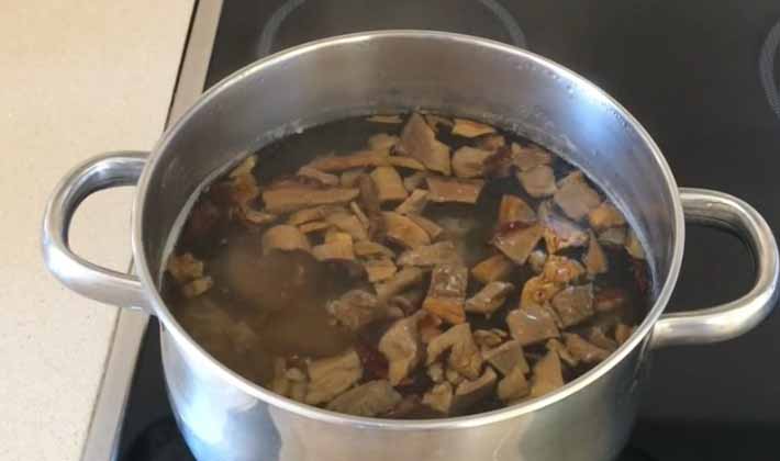 Faire cuire le bouillon à partir des champignons préparés.