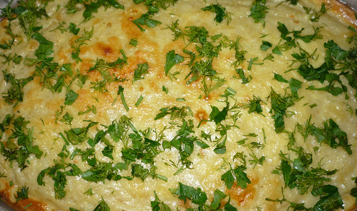 Graisser le plat avec de la crème sure et saupoudrer de craquelins moulus (ou de fromage râpé).