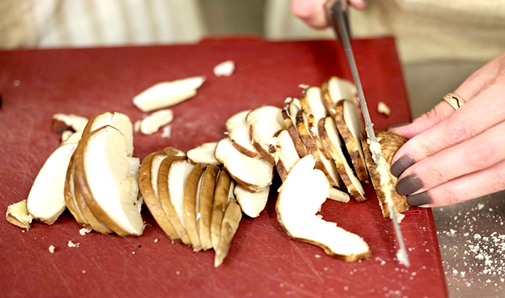 Épluchez les champignons, rincez-les et coupez-les en tranches.