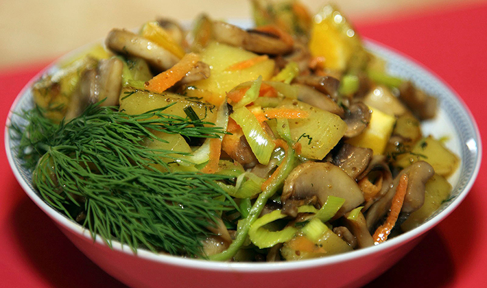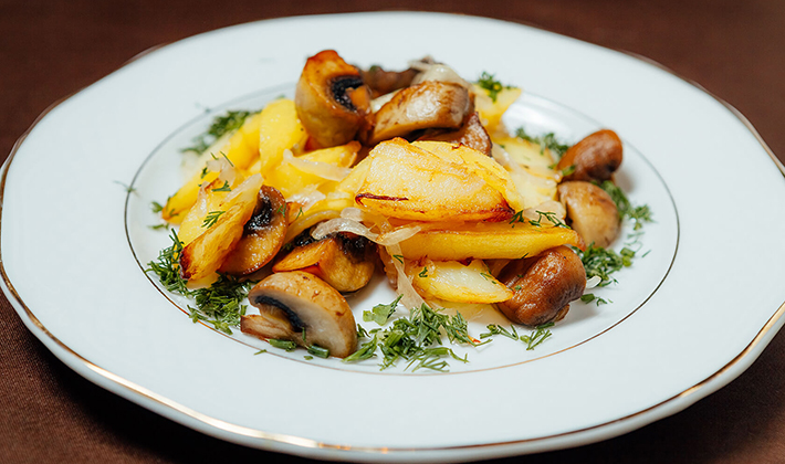 - Cèpes salés sautés à l'huile végétale avec pommes de terre