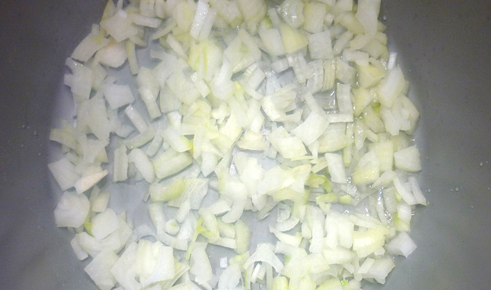 - Mettez les oignons dans une poêle avec le beurre chaud, saupoudrez de farine et faites frire jusqu'à ce qu'ils soient dorés.