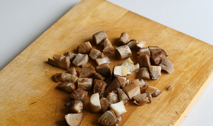 Rincer les champignons porcini à l'eau froide et les couper en petits morceaux.