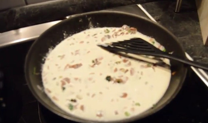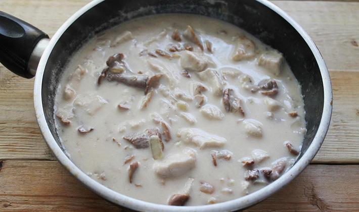 Faire cuire la sauce au porcini avec la crème sure pendant 1-2 minutes, puis retirer du feu.