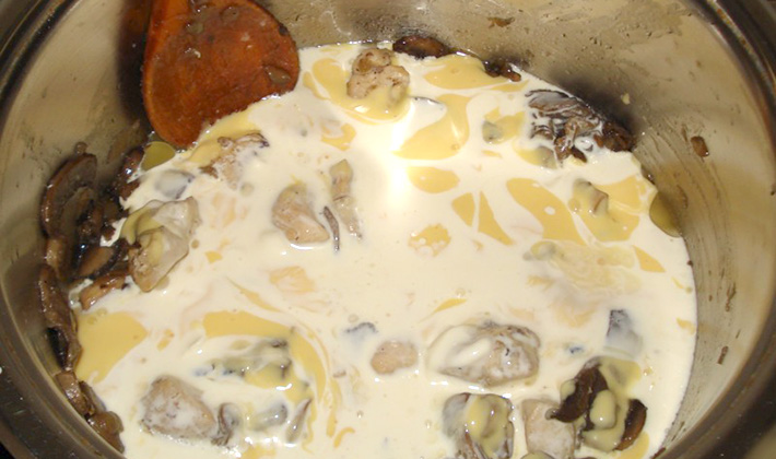 Sauce aux champignons au lait.