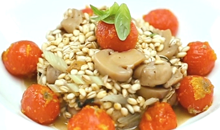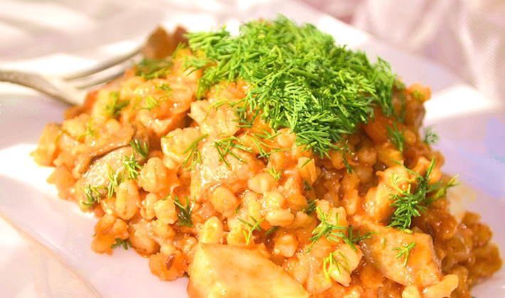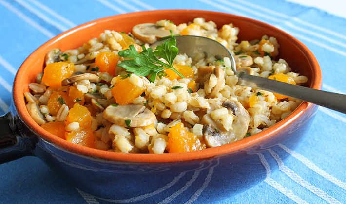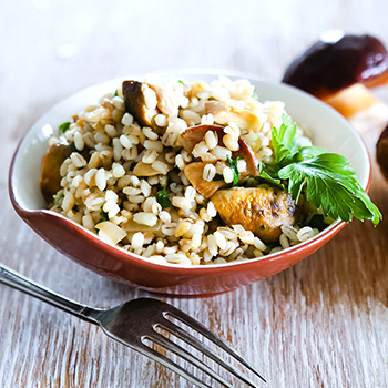 Orge aux cèpes dans une cocotte