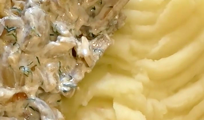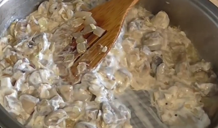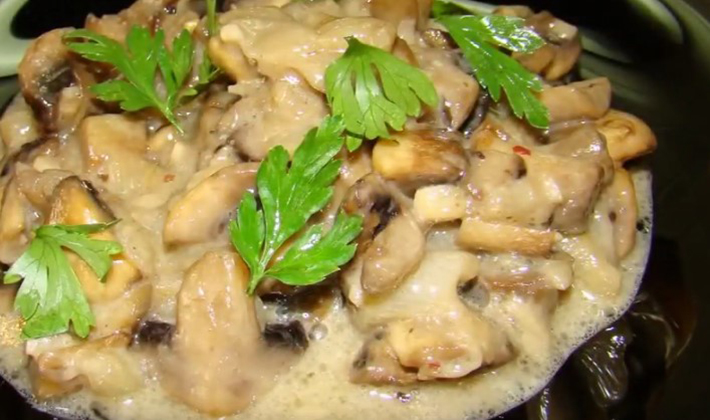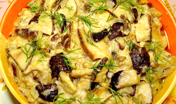 Champignons séchés, frits à la crème sure.