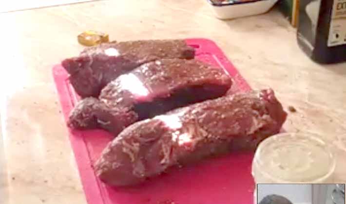 Couper le filet de bœuf en 100 g de médaillons, assaisonner avec le sel, le poivre, le thym et l'ail.