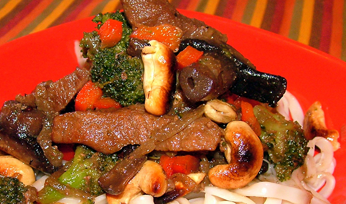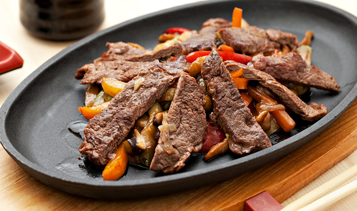 Pour cuire un bœuf cuit avec des cèpes, hachez-le finement en lanières et faites-le revenir au beurre pendant 15 à 20 minutes. Puis déplacez-les vers la fonte. Ajoutez le bœuf frit, coupé en fines tranches, les tranches de tomates mûres et les aubergines, hachées en cubes et blanchies à l’eau bouillante. Sur le dessus, déposez une couche d'oignons, de sel, d'épices, versez de l'eau et laissez mijoter à feu doux pendant 40 à 50 minutes (jusqu'à tendreté). 10 minutes avant la fin du ragoût, versez la crème sure, saupoudrez d'herbes hachées. Servez chaud.