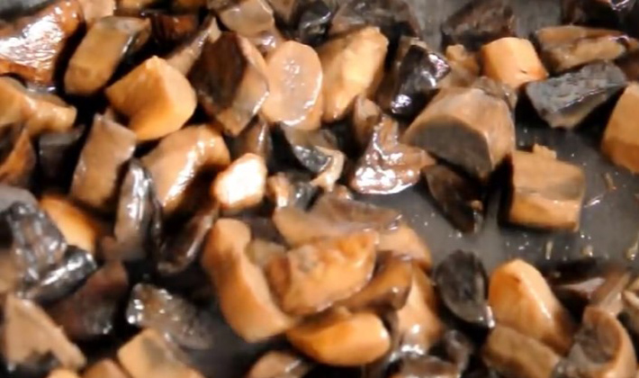 Retirer et hacher les champignons bouillis, filtrer le bouillon.
