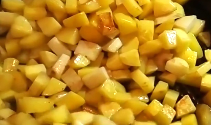 Dans un bouillon de champignons de la manière habituelle, faites bouillir les pommes de terre en dés jusqu'à cuisson complète.