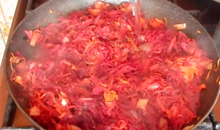 Mettez la casserole remplie au four, portez le bortsch à ébullition et laissez cuire pendant 3 à 5 minutes.