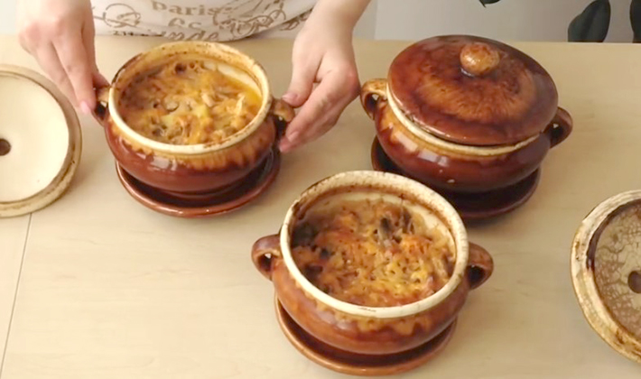 Lorsque l'eau s'écoule, décomposez-les uniformément dans des pots en argile, versez de l'eau chaude, du bouillon filtré (ou un bouillon de légumes) et mettez au four ou sur la cuisinière pendant 40 minutes, en réduisant le feu après ébullition.