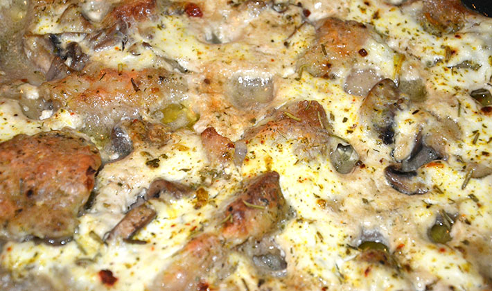 Épluchez les champignons, rincez-les, coupez-les en morceaux et pendant 5 minutes. cuire à l'eau salée. Sélectionnez avec une cuillère à égoutter et laissez l'eau s'écouler, puis hachez, saupoudrez de farine et faites revenir avec de l'oignon émincé dans la graisse. Ajoutez les oeufs, fouetté avec la crème sure, les craquelins, le sel, le poivre, mélangez le tout et mettez dans une plaque à pâtisserie graissée et saupoudré de chapelure. Recouvrez de graisse et faites cuire. Au moment de servir, couper la cocotte en morceaux. Servi avec une sauce à la tomate ou à la crème sure.