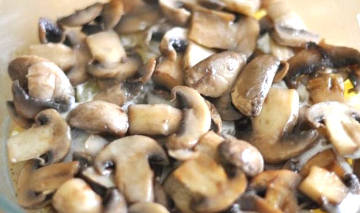 Lavez, épluchez, coupez les champignons, hachez-les et faites-les revenir dans une poêle avec une portion d'huile végétale préchauffée.