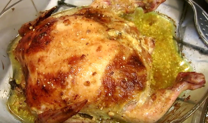 Au lieu d'un poulet entier, vous pouvez prendre des cuisses de poulet.