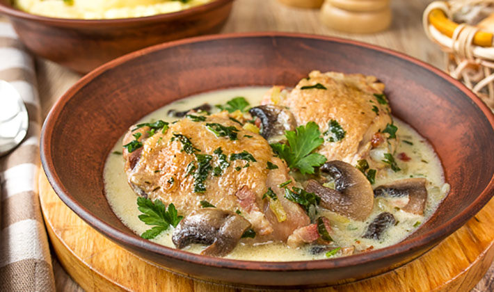 - Poulet aux cèpes dans une sauce crémeuse
