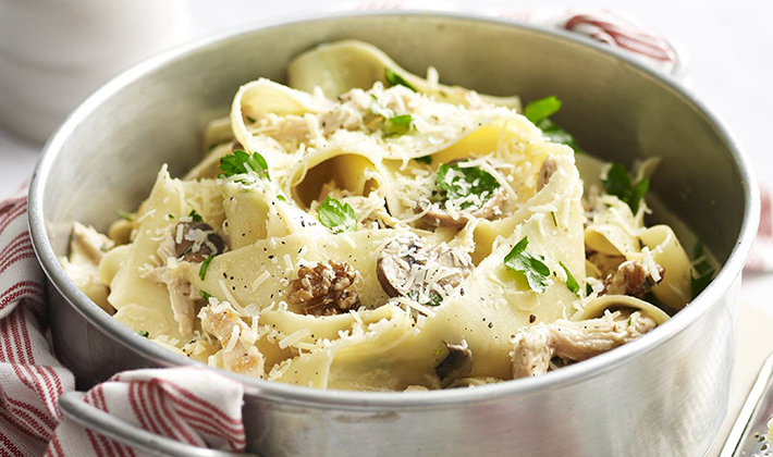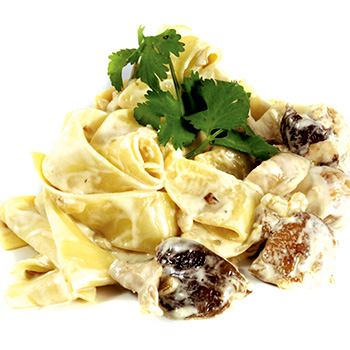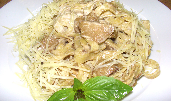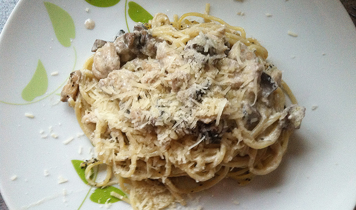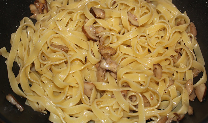 Spaghetti aux cèpes à la sauce cognac.