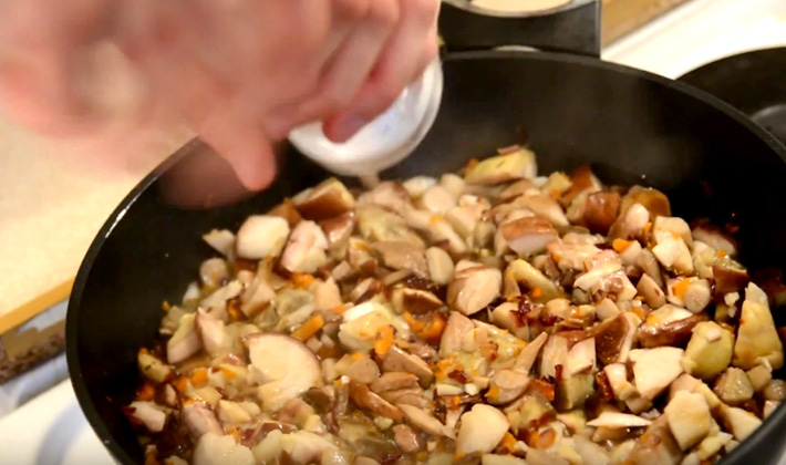 - Verser l'assaisonnement pour champignons, le poivre moulu et ajouter si nécessaire.