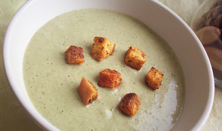 À l'aide d'un mélangeur submersible, la soupe est écrasée à une consistance homogène et ajoutée au goût.