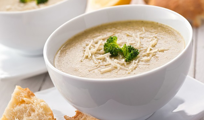 - Ajouter le bouillon, la crème, verser le fromage à la crème râpé.