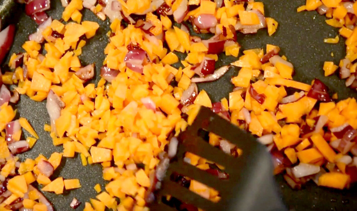 Pelez la couche supérieure des légumes, lavez-les et passez-les dans l'huile jusqu'à tendreté.