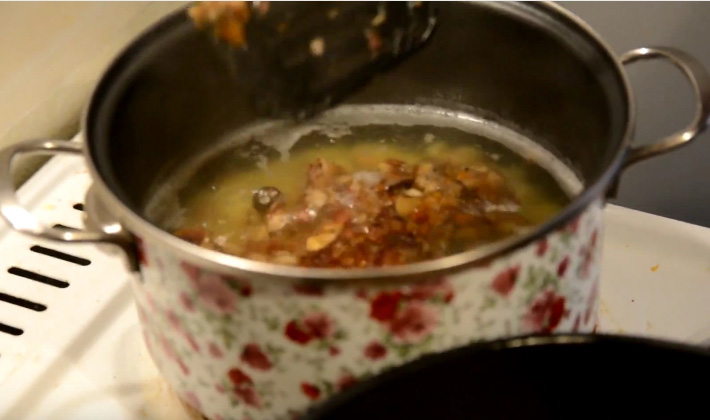 - Transférer dans une casserole jusqu'à la masse totale, faire bouillir pendant 5-8 minutes.