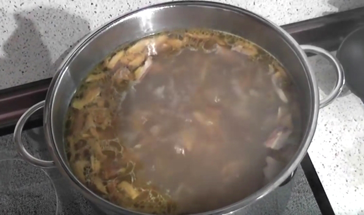 - Faites bouillir pendant 30 minutes, en enlevant constamment la mousse avec une cuillère à égoutter pour éclairer la soupe.