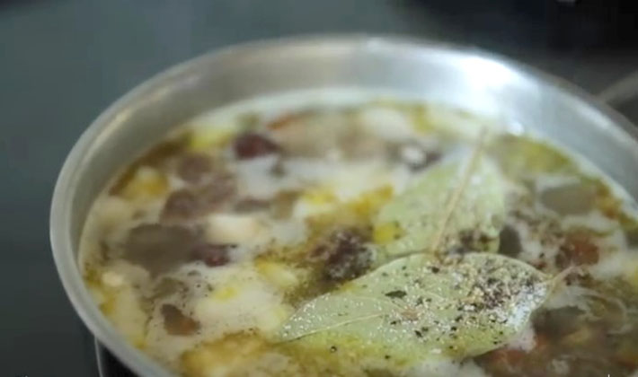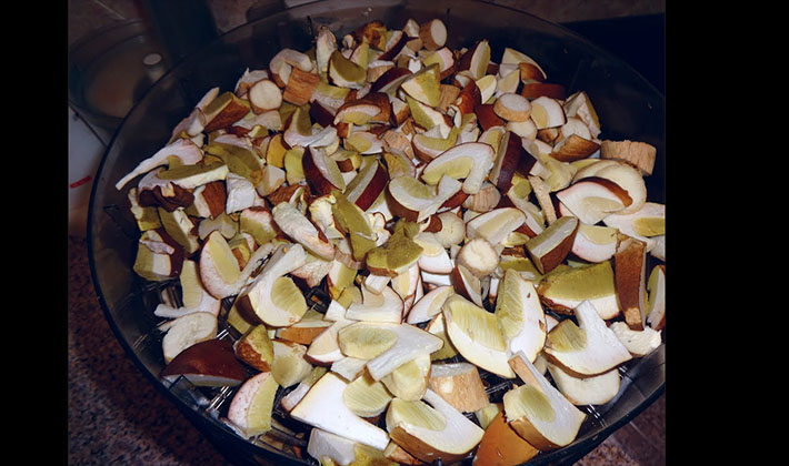 - Les chapeaux de champignons sont coupés en tranches, ébouillantage, placés sur une passoire, et lorsque l'eau est égouttée, transférer dans une casserole, verser l'eau et laisser cuire pendant 40 minutes.