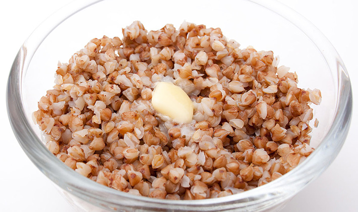 Préparez la farce comme suit: dans une casserole, faites sécher les gruaux de sarrasin secs, versez-y de l'eau bouillante, fermez le couvercle, mettez au four chaud et faites cuire le porridge rouge, de sorte que le porridge est «un grain de grain».