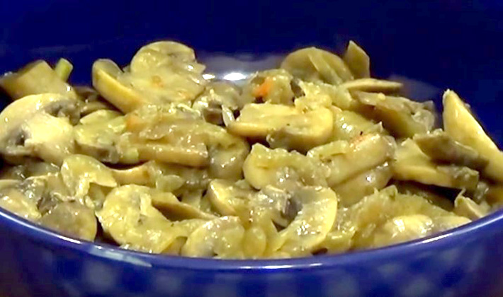 - Puis salez et poivrez les champignons, ajoutez 3/4 tasse de crème sure, une cuillerée de farine chauffée et amenez le mélange à ébullition.