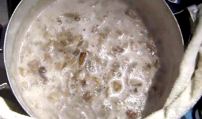 La préparation aux champignons est définie comme suit: si les champignons tombent au fond, ils sont bouillis.