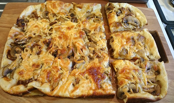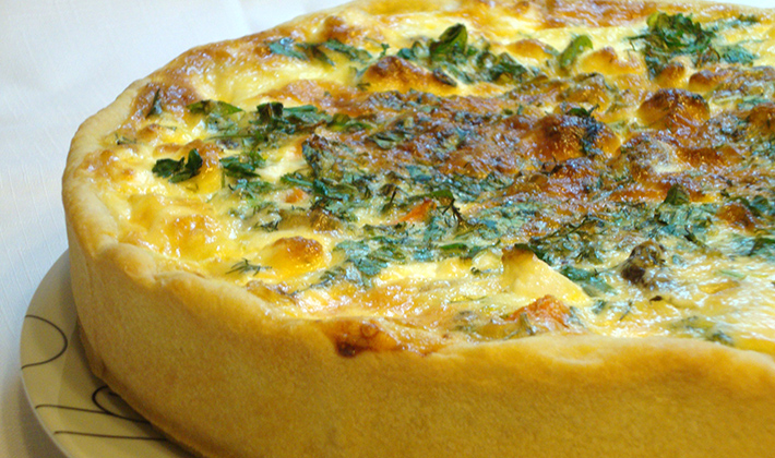 Après la cuisson, graisser la tarte avec de l’huile végétale, la couper en portions, la mettre dans un beau plat et servir bien chaud.