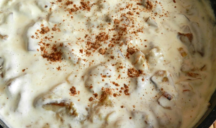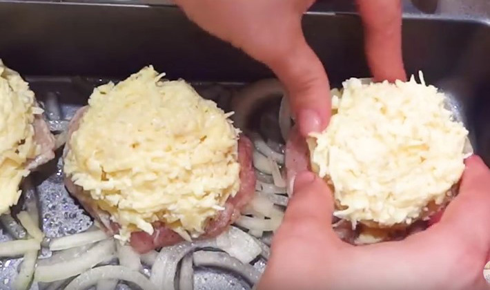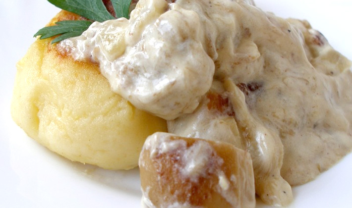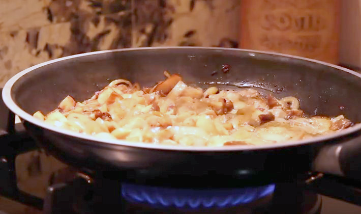 - Ensuite, faites frire dans du beurre jusqu'à coloration dorée, versez la crème, le sel, le poivre, ajoutez le fromage râpé et le ragoût jusqu'à épaississement