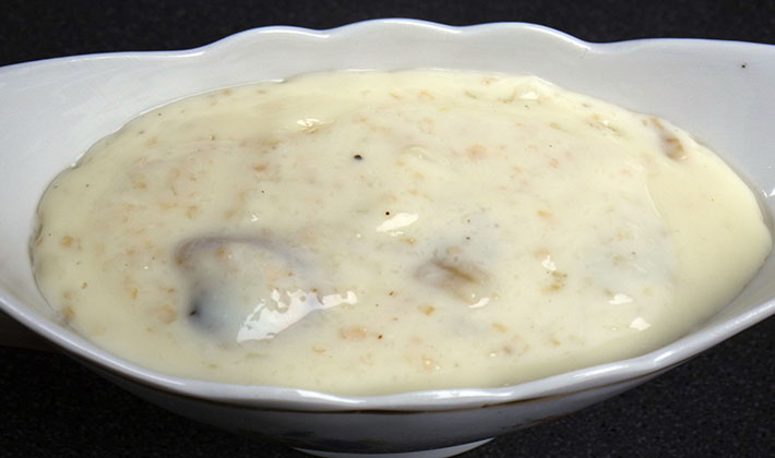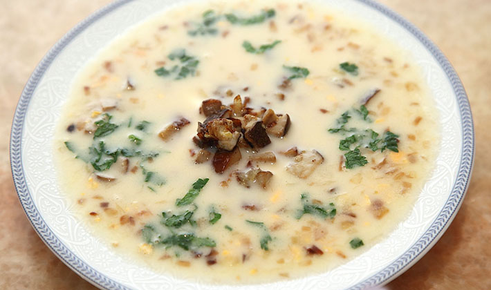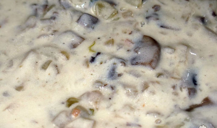 La crème de champignons blancs est un excellent ajout à tous les plats principaux sans exception. Il peut être servi avec du poulet et du canard, de la dinde et de l'oie. Parfaitement en harmonie avec le porc, l'agneau et le veau.