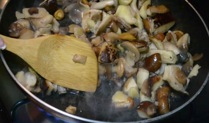 Faites chauffer l'huile dans une poêle et faites y cuire les champignons jusqu'à ce que le liquide s'évapore.