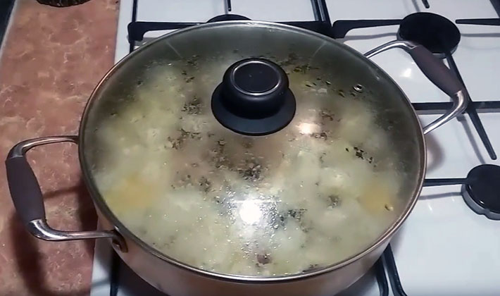 Ajoutez ensuite du sel au goût, ajoutez les légumes verts, couvrez et laissez la cuisinière éteinte pendant 10 minutes, jusqu'à ce que les pommes de terre soient prêtes.