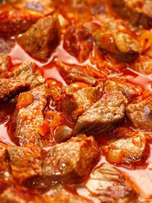 - Ragoût de viande aux champignons et pommes de terre à la pâte de tomates