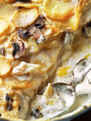 - Gratin de pommes de terre aux champignons, mozzarella et viande