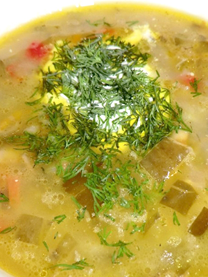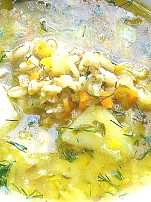 - Remuez et faites bouillir pendant 3-5 minutes, laissez reposer sur la cuisinière pendant 10 minutes. et servir, décoré avec des verts.