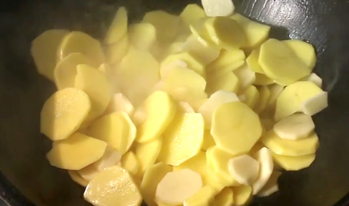 - Faire frire les pommes de terre dans l'huile jusqu'à ce qu'elles soient dorées et les mettre dans une casserole.